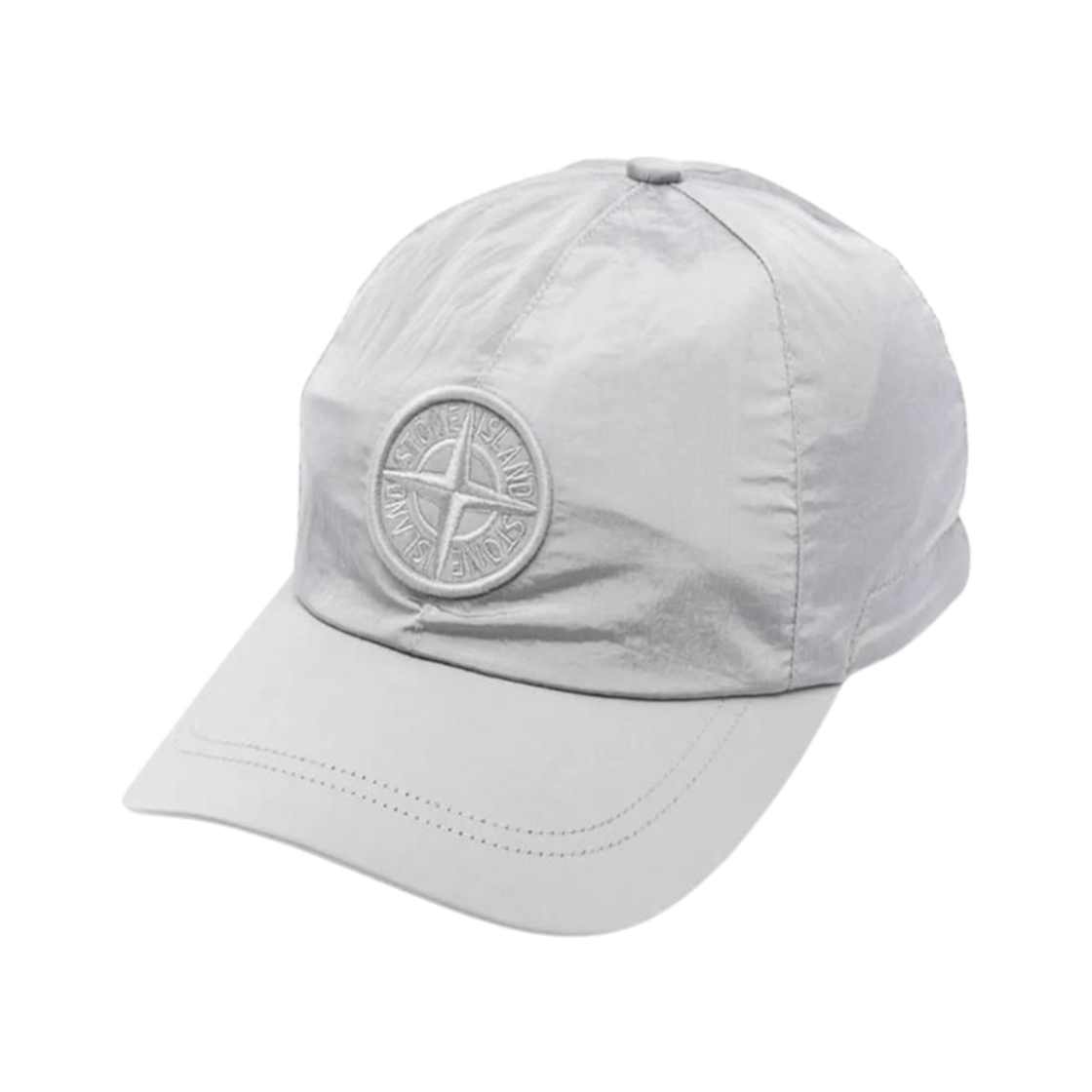 스톤 아일랜드 9100011 나일론 메탈 에코닐 드로우코드 컴퍼스 자수 베이스볼 캡 펄 그레이 - 25FW