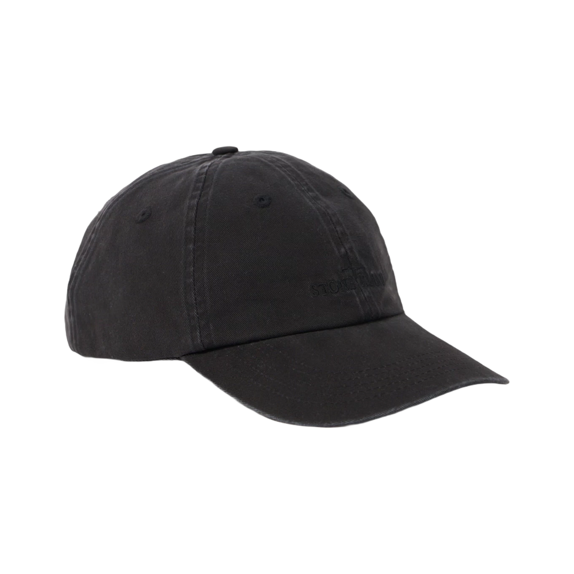 스톤 아일랜드 9100009 브러쉬드 코튼 개버딘 햇 베이스볼 캡 로고 자수 블랙 - 25FW