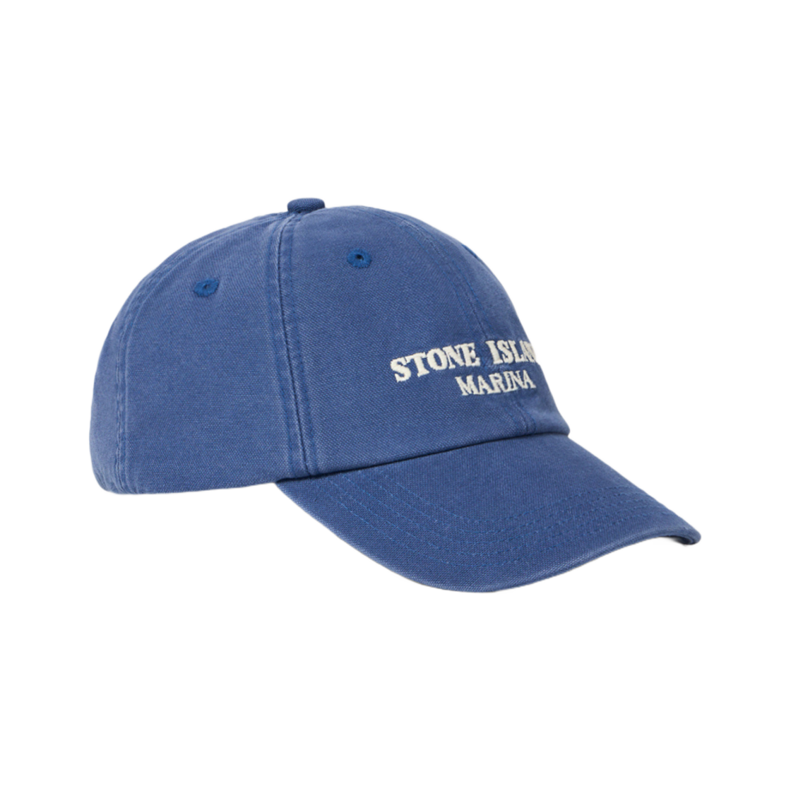 스톤 아일랜드 9100005 더블 트위스티드 텔라 스톤 아일랜드 마리나 베이스볼 캡 자수 레터링 앤 어드저스터블 스트랩 마린 블루 - 25SS