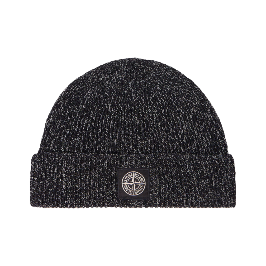 스톤 아일랜드 N100001 니트 리플렉티브 비니 리플렉티브 코팅 앤 컴퍼스 패치 블랙 멜란지 - 25FW