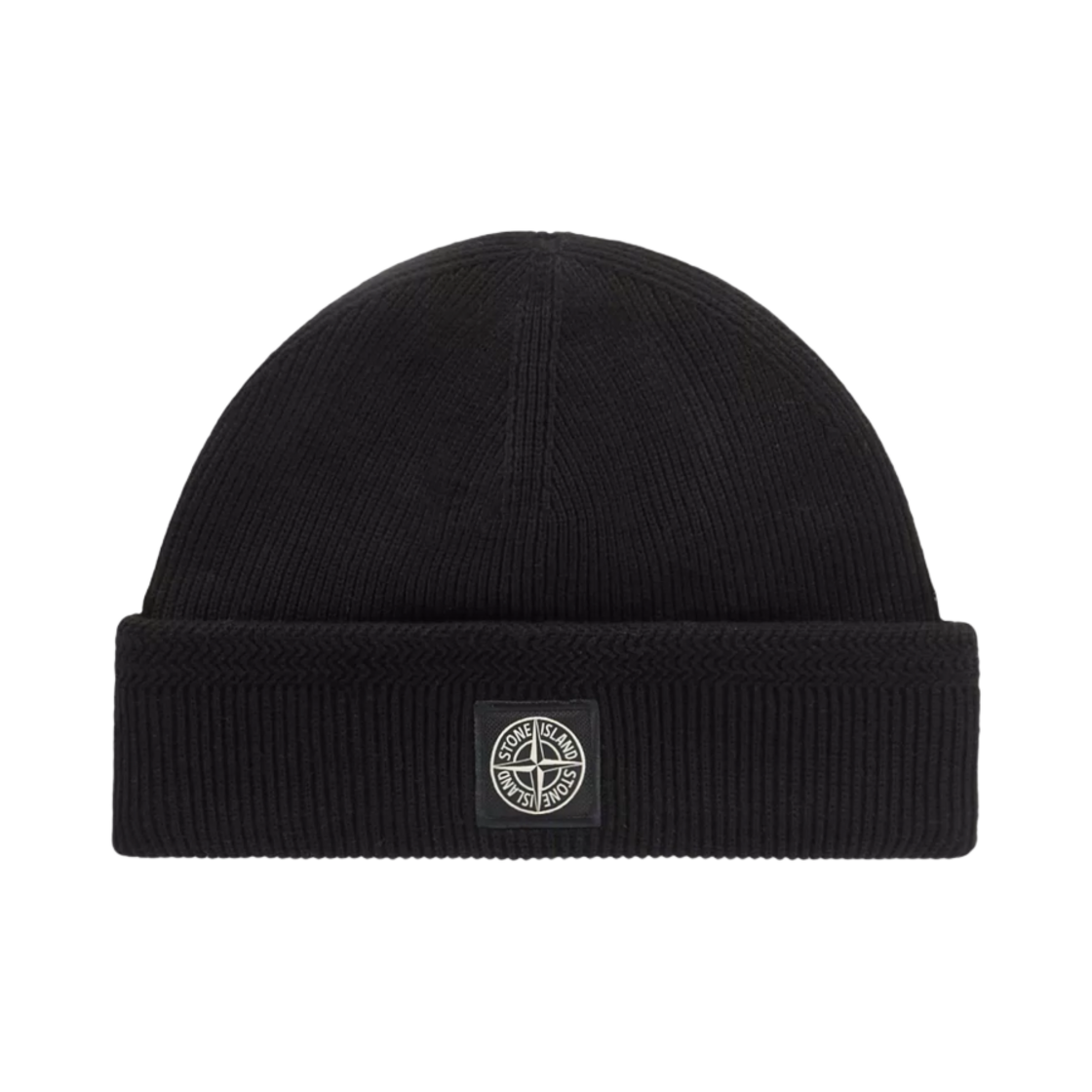 스톤 아일랜드 N100002 립드 소프트 오가닉 코튼 비니 컴퍼스 로고 온 커프 블랙 - 25SS