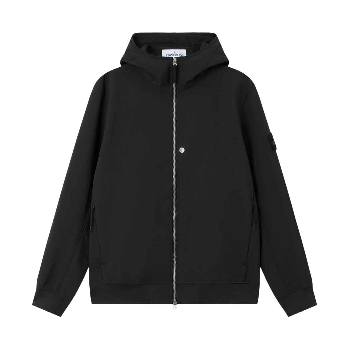 스톤 아일랜드 Q0322 소프트 쉘-R 후드 집업 자켓 블랙 - 24FW