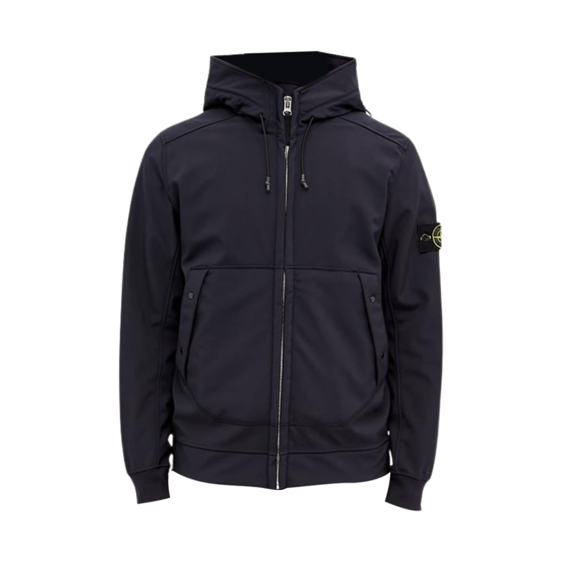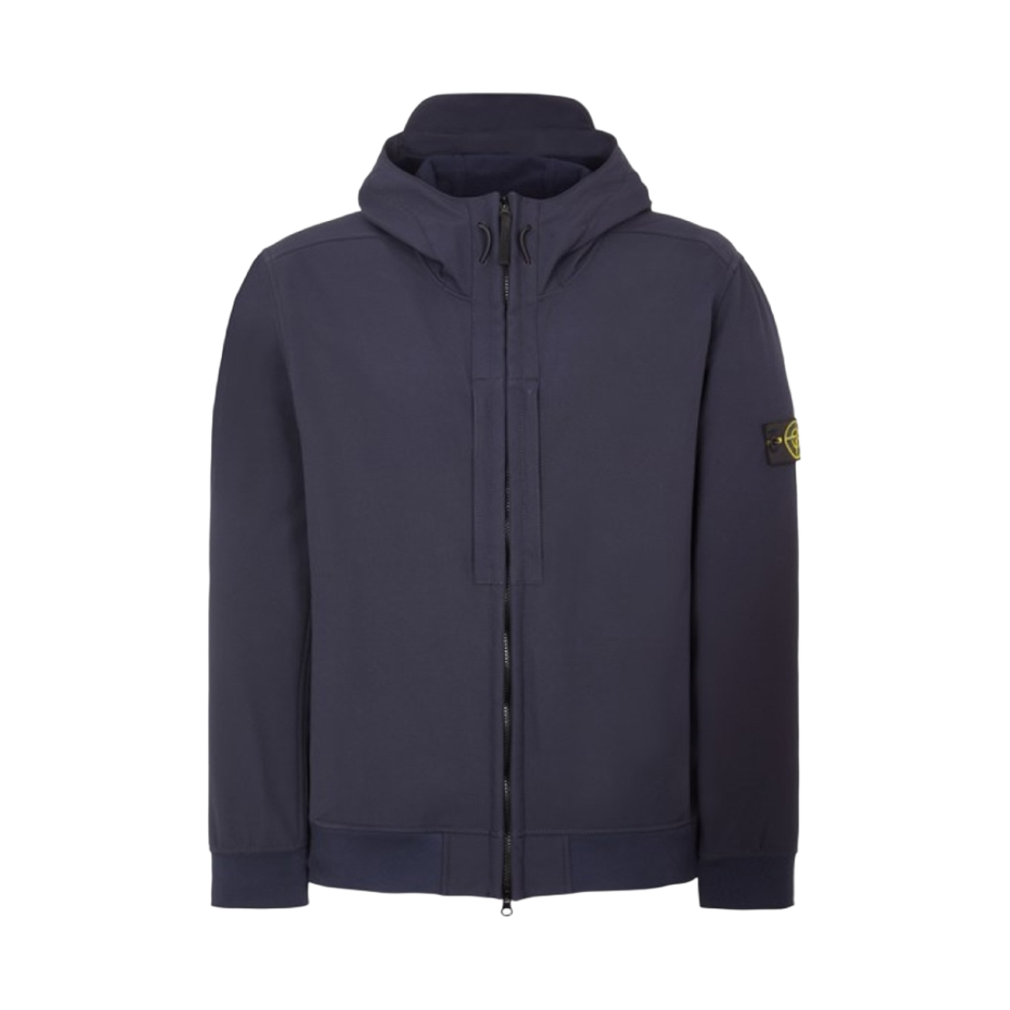 스톤 아일랜드 Q100004 소프트 쉘-R E.다이 테크놀로지 리사이클 폴리에스터 라이트 후드 자켓 웨더 레지스턴트 멤브레인 네이비 블루 - 25FW