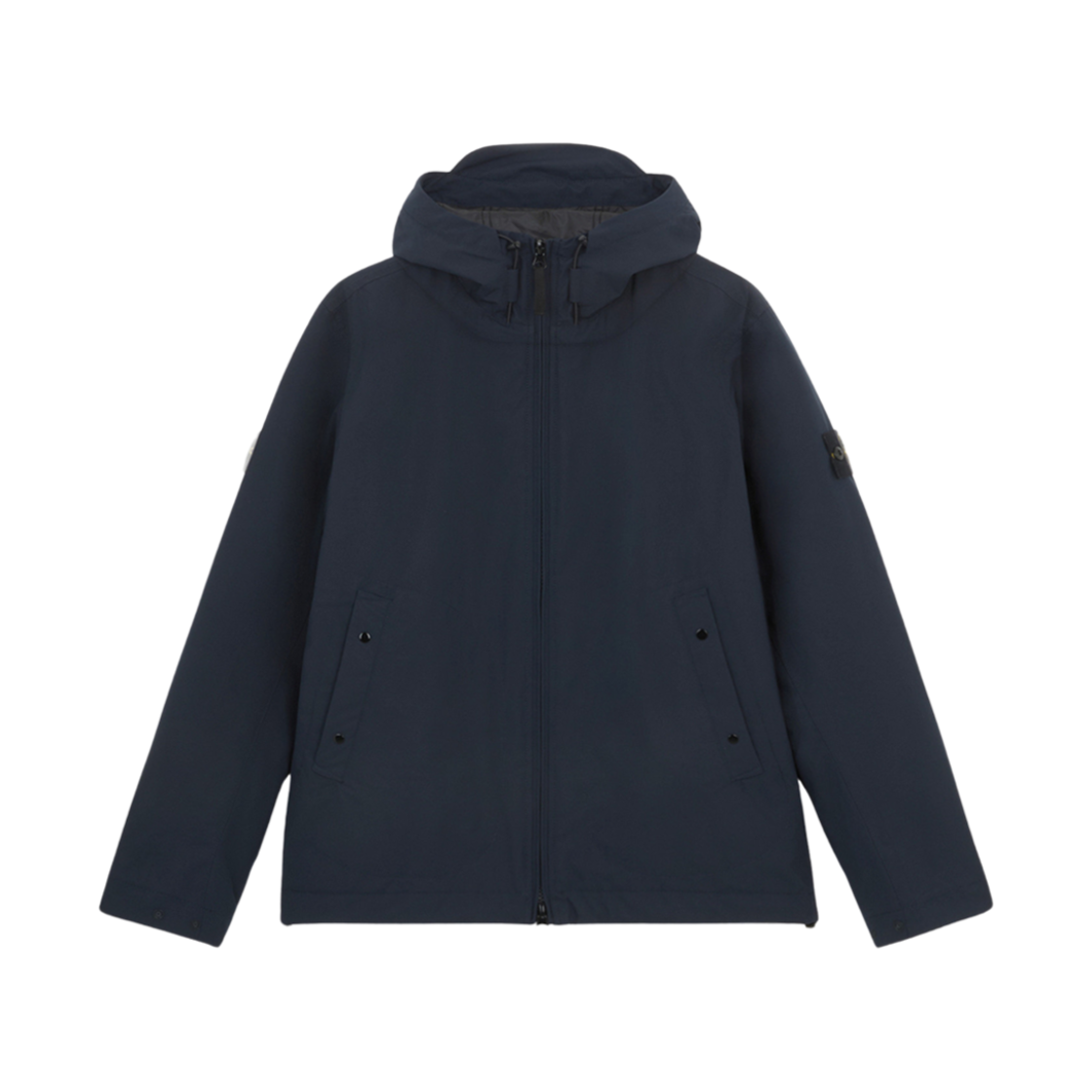 스톤 아일랜드 Q100010 소프트 쉘-R E.다이 테크놀로지 리사이클 폴리에스터 라이트 후드 파카 웨더 레지스턴트 멤브레인 네이비 블루 - 25FW