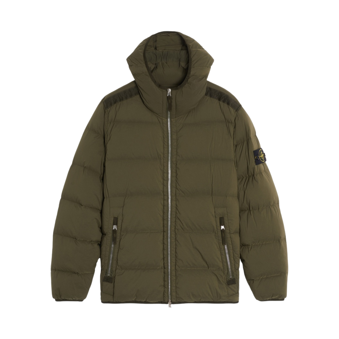 스톤 아일랜드 4100010 크링클 랩스 NY 리사이클 나일론 다운 자켓 윈드 레지스턴스 밀리터리 그린 - 25FW
