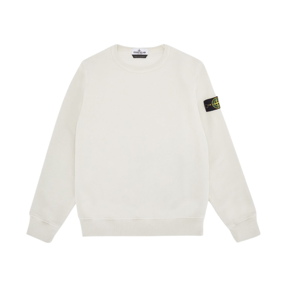 스톤 아일랜드 6100044 오가닉 코튼 플리스 크루넥 스웨트셔츠 립 디테일 화이트 - 25SS