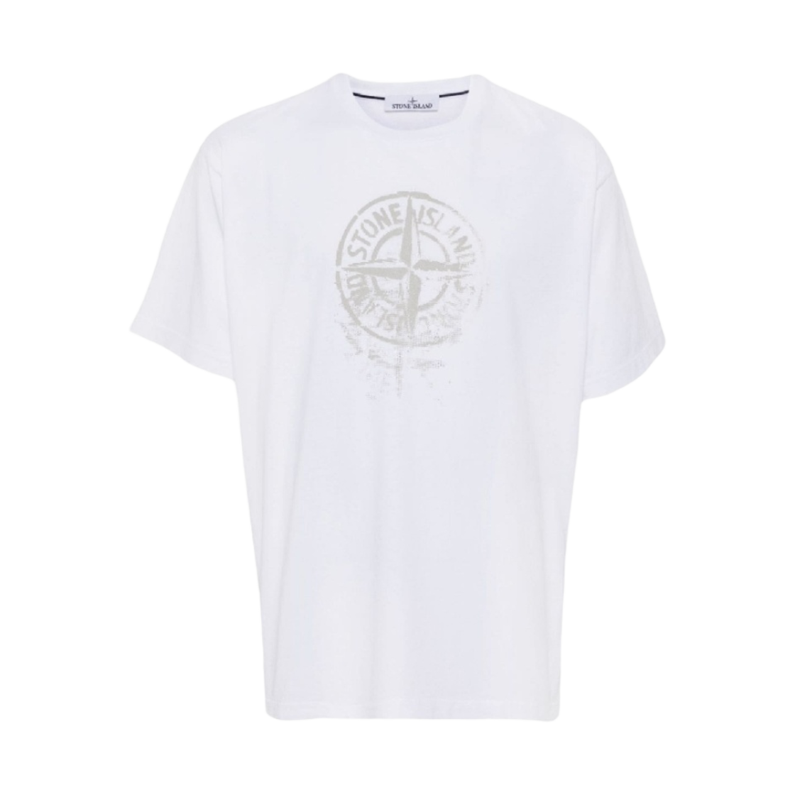 스톤 아일랜드 23757 오가닉 코튼 피사토 이펙트 티셔츠 화이트 - 23SS
