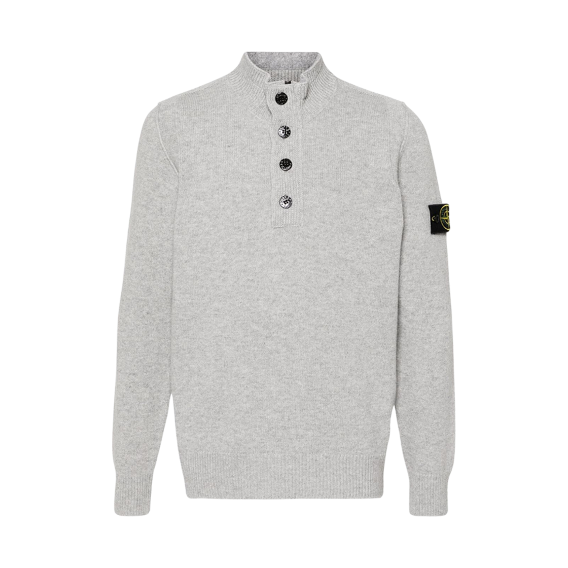 스톤 아일랜드 540A3 하이 넥 하프 버튼 램스울 니트 파우더 멜란지 - 24FW