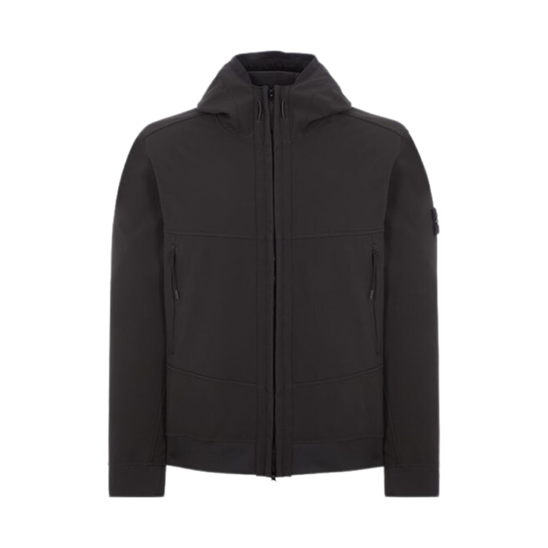 스톤 아일랜드 Q0322 소프트 쉘-R 후드 집업 자켓 블랙 - 24FW