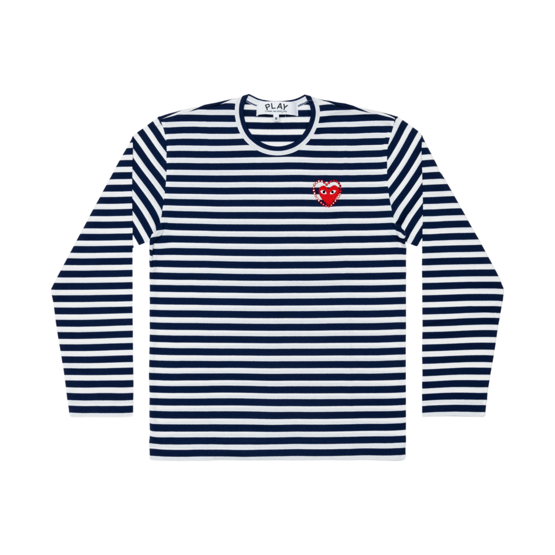 플레이 꼼데가르송 레드 하트 x 라인스톤 보더 롱슬리브 네이비 화이트