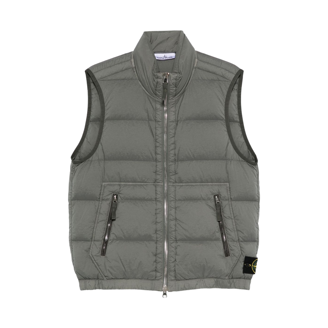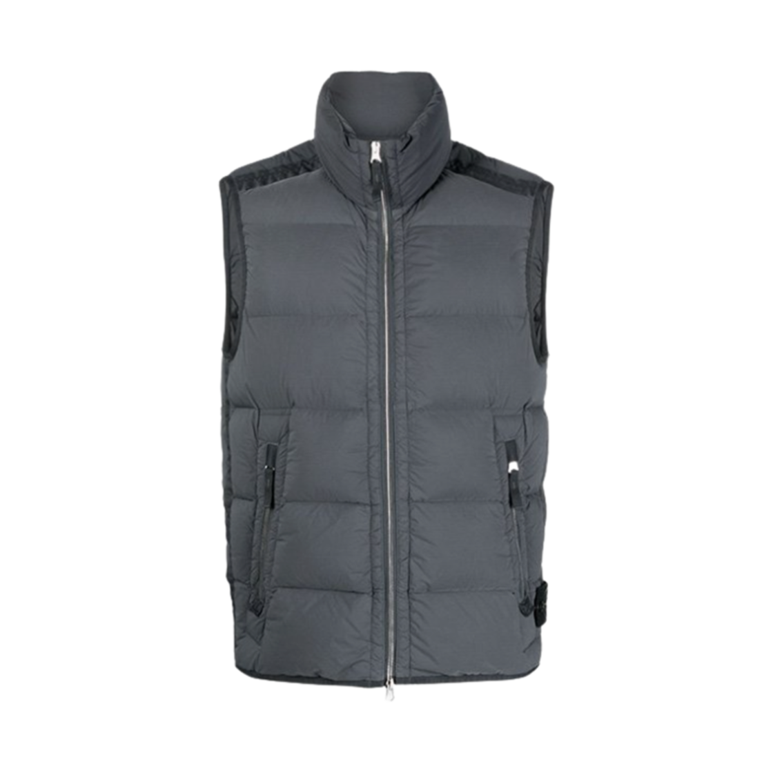 스톤 아일랜드 G0828 심리스 터널 나일론 다운-TC 다운 지퍼 베스트 위드 안티 드롭 그린 그레이 - 24FW