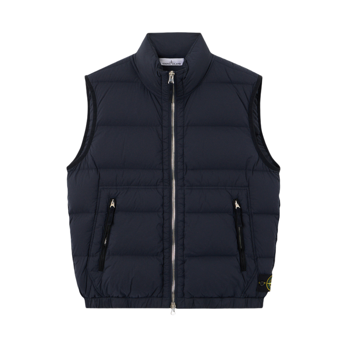 스톤 아일랜드 G0828 심리스 터널 나일론 다운-TC 다운 지퍼 베스트 위드 안티 드롭 네이비 블루 - 24FW