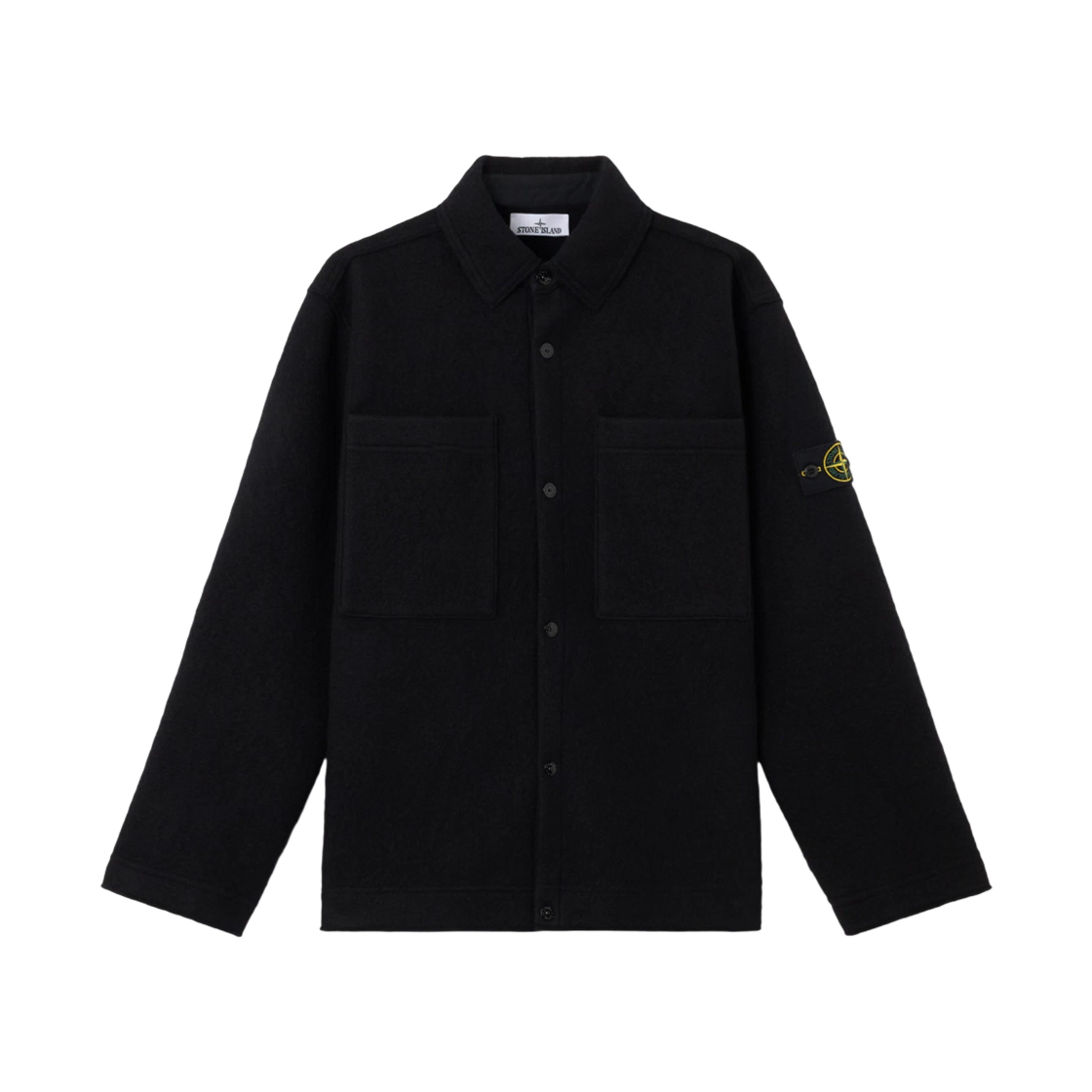 스톤 아일랜드 5100058 펠티드 RWS 울 버튼 업 셔츠 체스트 포켓 앤 스냅 패스닝 블랙 - 25FW