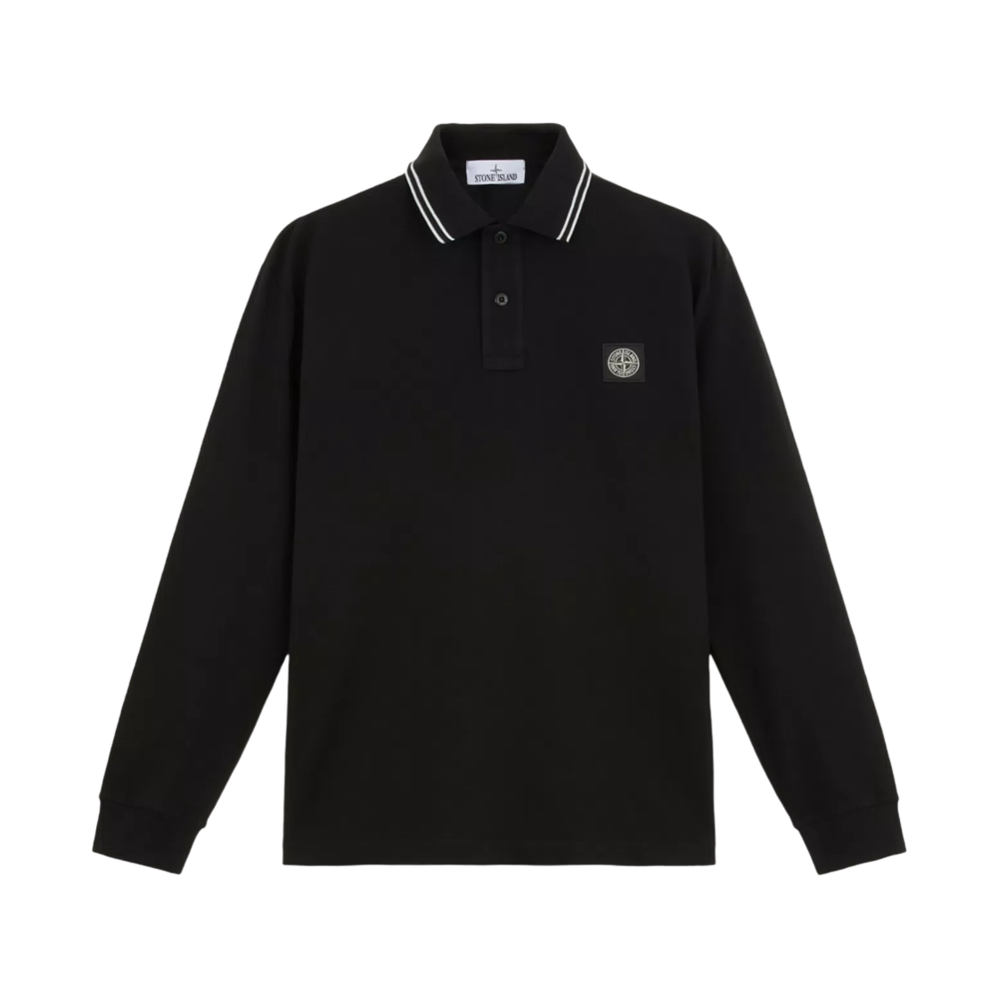 스톤 아일랜드 22002SL 오가닉 코튼 엘라스테인 피케 슬림핏 롱슬리브 폴로 셔츠 컴퍼스 패치 블랙 - 25SS