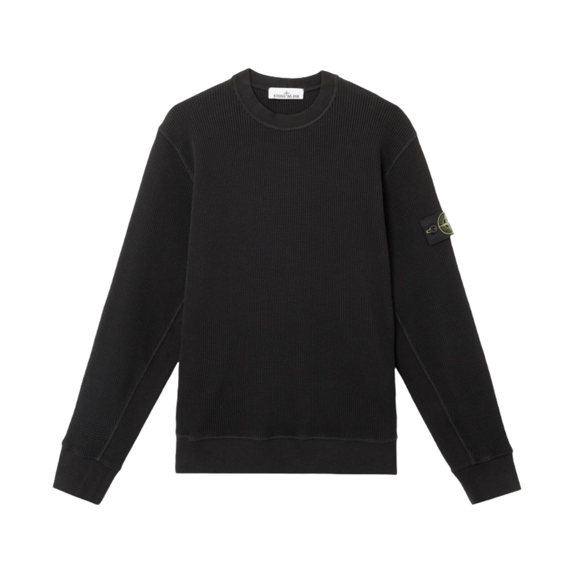 스톤 아일랜드 6100008 오가닉 코튼 와플 플리스 크루넥 스웨트셔츠 립드 디테일 블랙 - 25SS