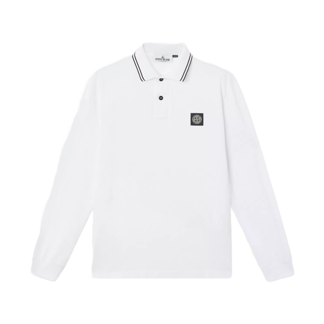 스톤 아일랜드 22002SL 오가닉 코튼 엘라스테인 피케 슬림핏 롱슬리브 폴로 셔츠 컴퍼스 패치 화이트 - 25SS