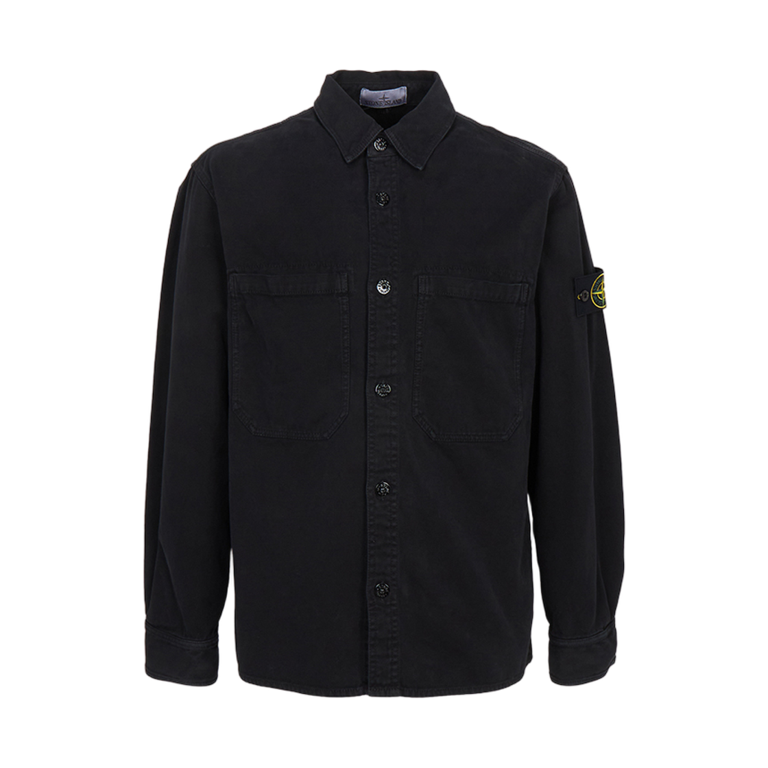 스톤 아일랜드 102WN 브러쉬드 오가닉 코튼 오버셔츠 블랙 - 23FW