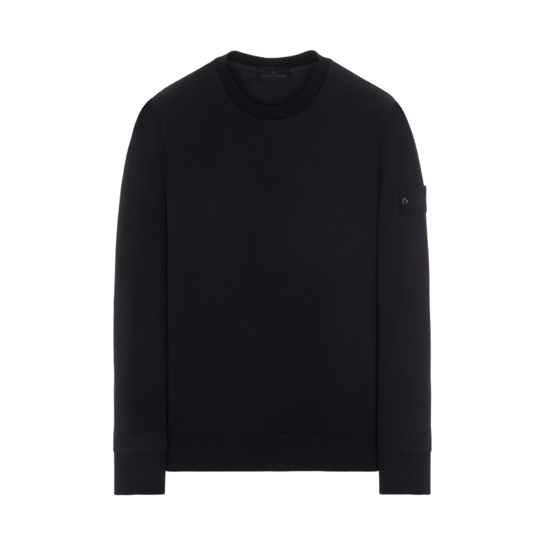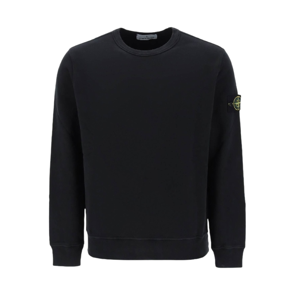 스톤 아일랜드 6100028 브러쉬드 오가닉 코튼 플리스 레귤러 핏 크루넥 스웨트셔츠 립드 인서트 블랙 - 25FW