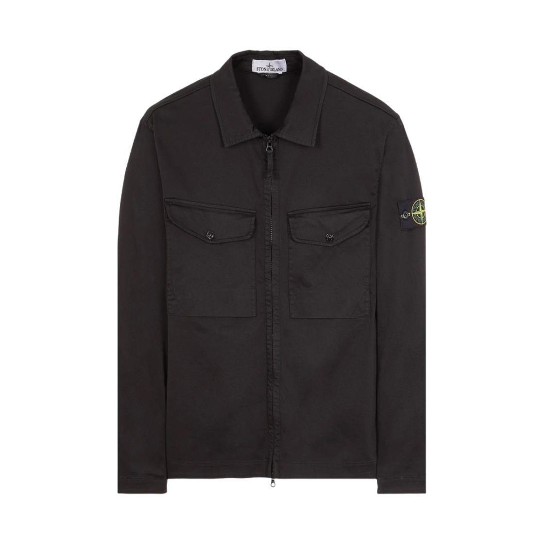 스톤 아일랜드 11010 스트레치 코튼 개버딘 오버셔츠 블랙 - 23FW