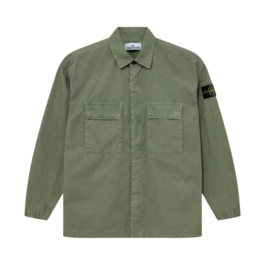 스톤 아일랜드 102WN 브러쉬드 오가닉 코튼 오버셔츠 올리브 그린 - 23FW