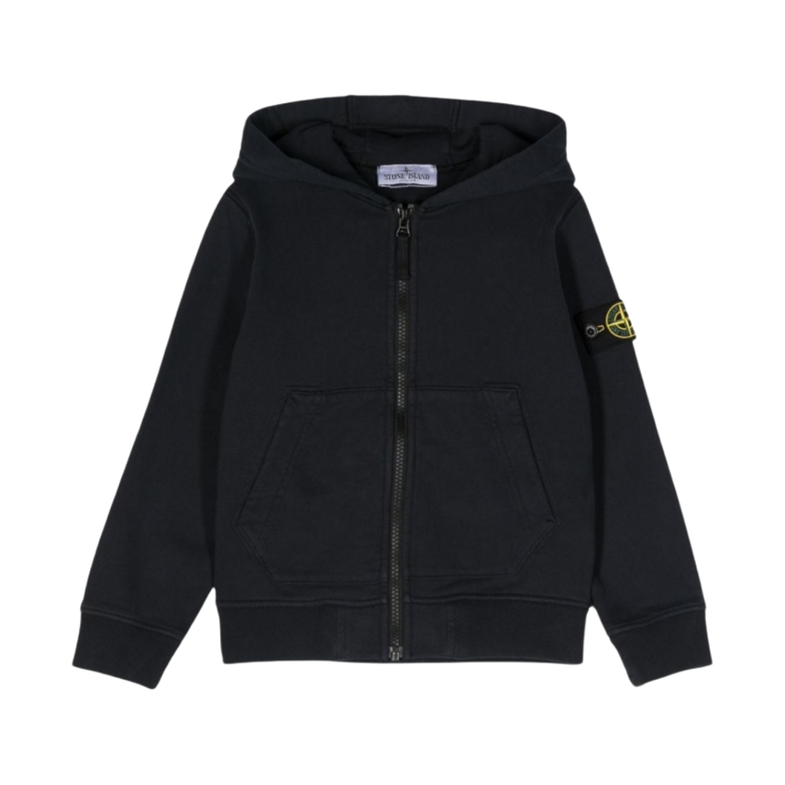 (키즈) 스톤 아일랜드 60740 코튼 플리스 풀 집업 후드 스웨트셔츠 네이비 블루 - 23SS