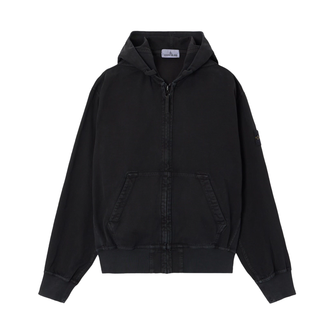 스톤 아일랜드 64251 가먼트 다이드 코튼 플리스 풀 집업 후드 스웨트셔츠 블랙 - 24FW