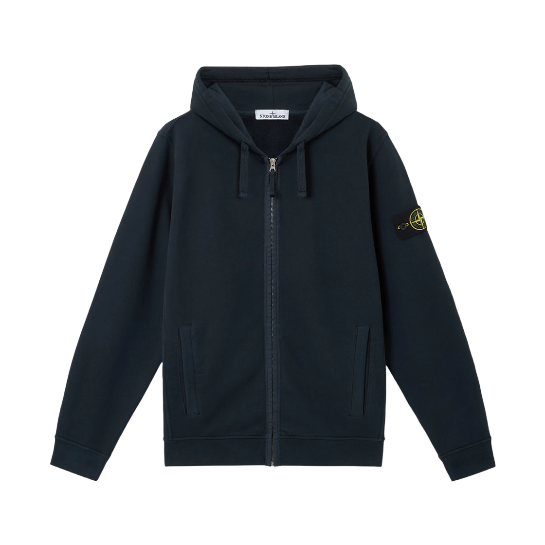 스톤 아일랜드 61620 브러쉬드 코튼 플리스 가먼트 다이드 풀 지퍼 후드 스웨트셔츠 네이비 블루 - 23FW