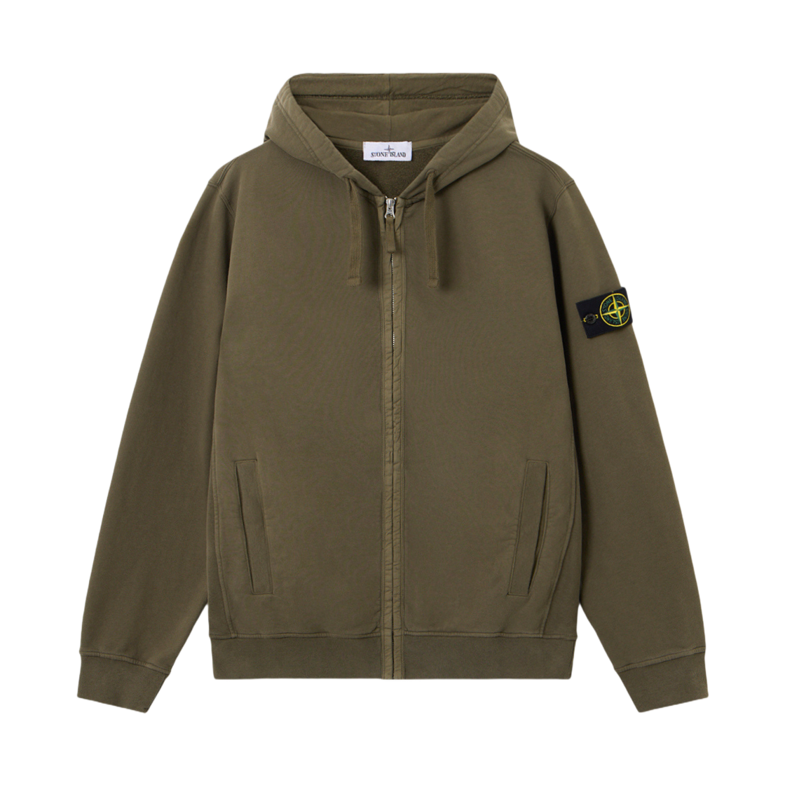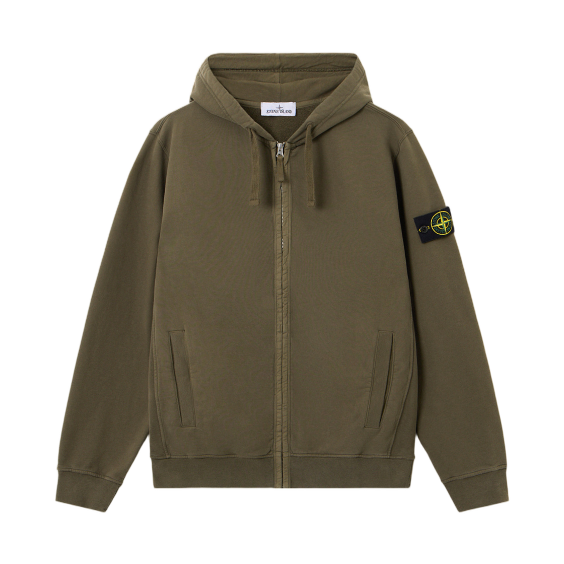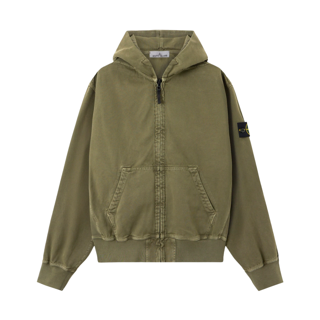 스톤 아일랜드 63160 올드 트리트먼트 후드 풀 집 스웨트셔츠 머스크 그린 - 24SS