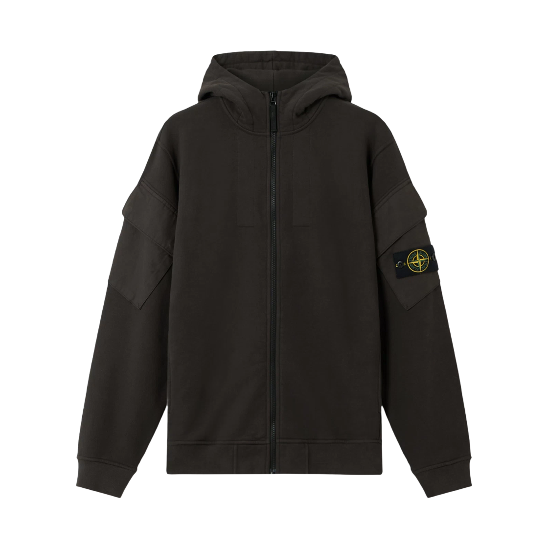 스톤 아일랜드 6100009 브러쉬드 오가닉 코튼 플리스 레귤러 핏 집업 후드 스웨트셔츠 슬리브 포켓 리드 그레이 - 25FW