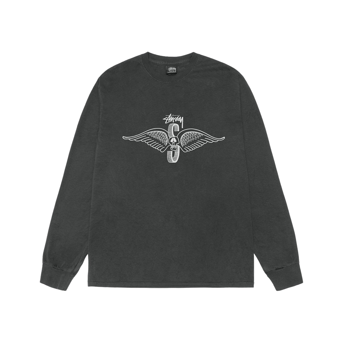 스투시 스컬 윙스 피그먼트 다이드 롱슬리브 티셔츠 블랙