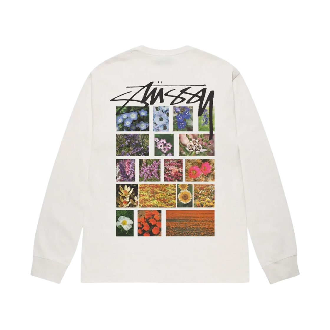 스투시 플라워 그리드 피그먼트 다이드 롱슬리브 티셔츠 내츄럴