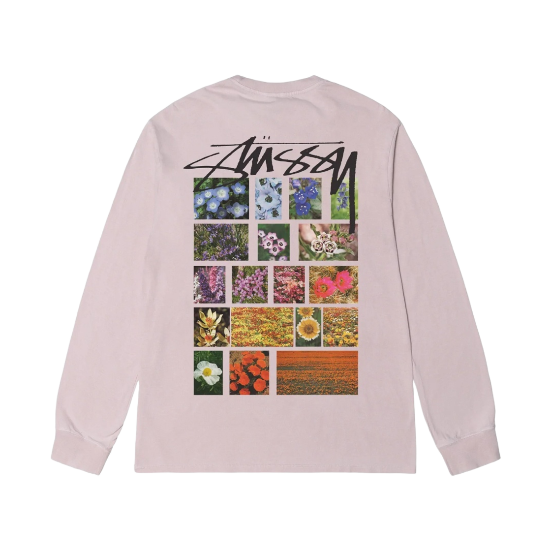 스투시 플라워 그리드 피그먼트 다이드 롱슬리브 티셔츠 블러쉬