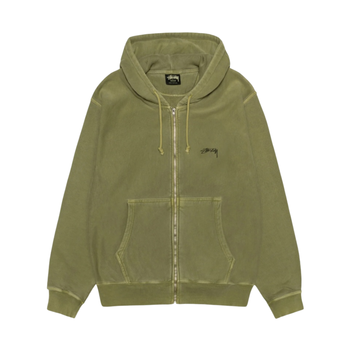 스투시 피그먼트 다이드 스무스 스탁 집 후드 올리브