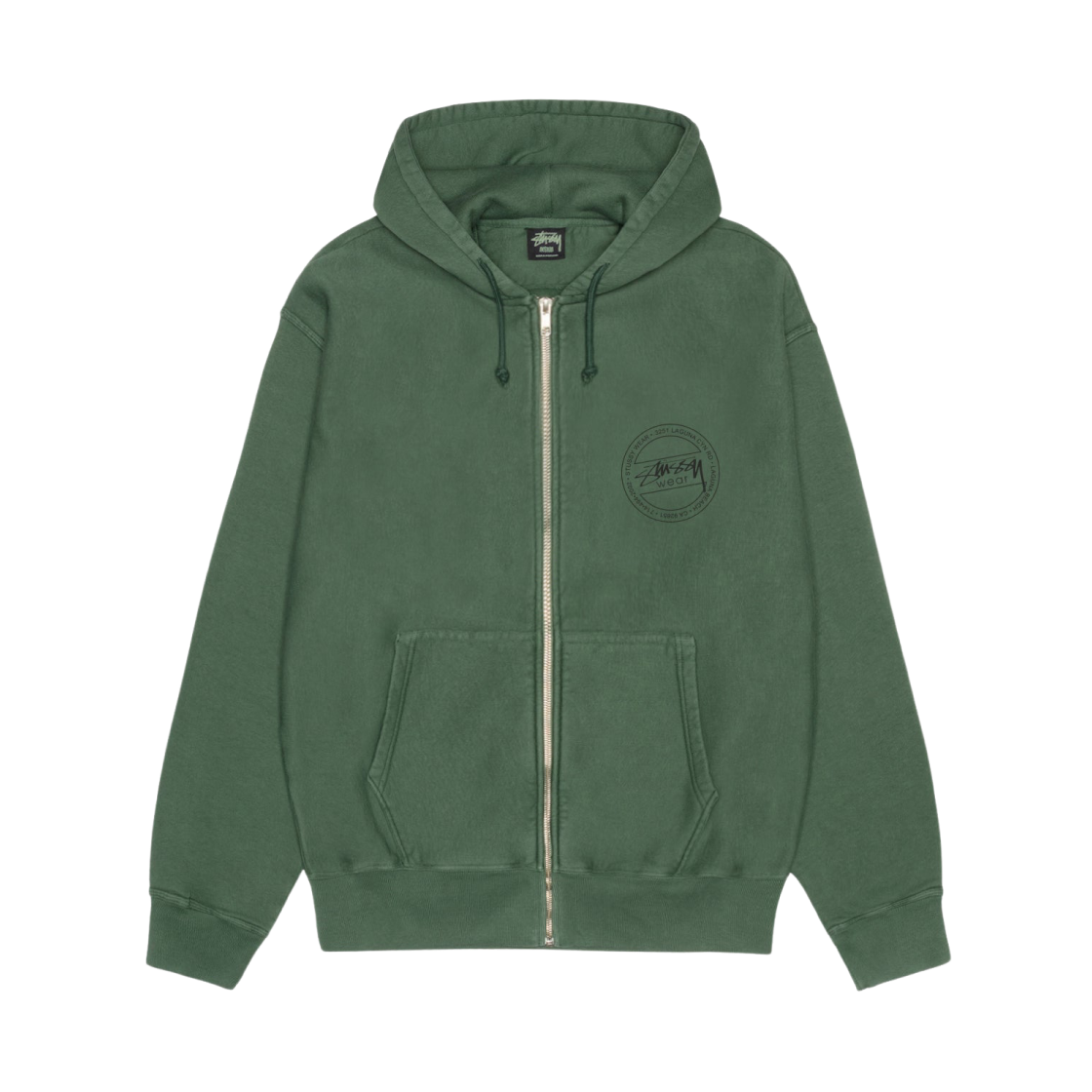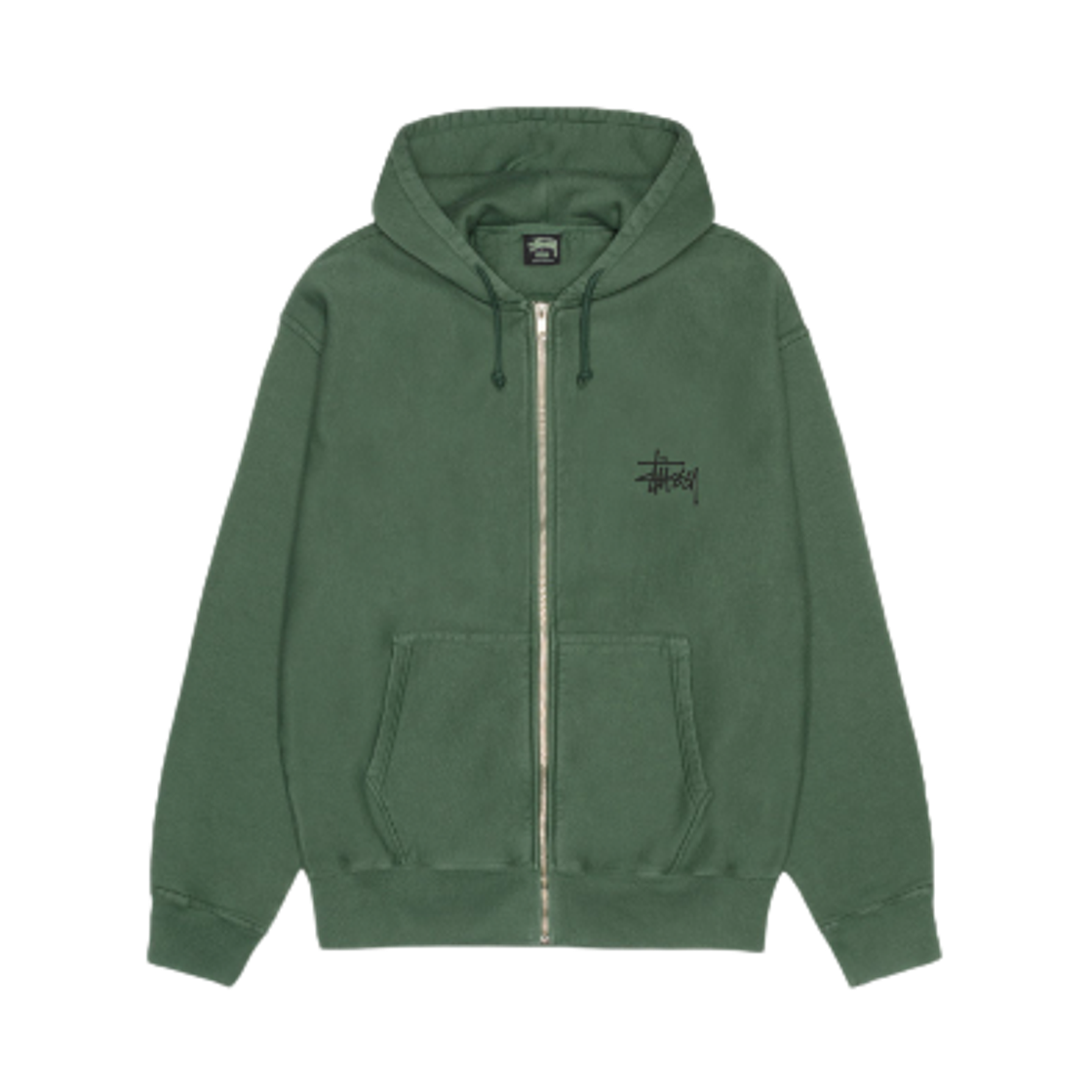 스투시 베이직 피그먼트 다이드 집 후드 파인