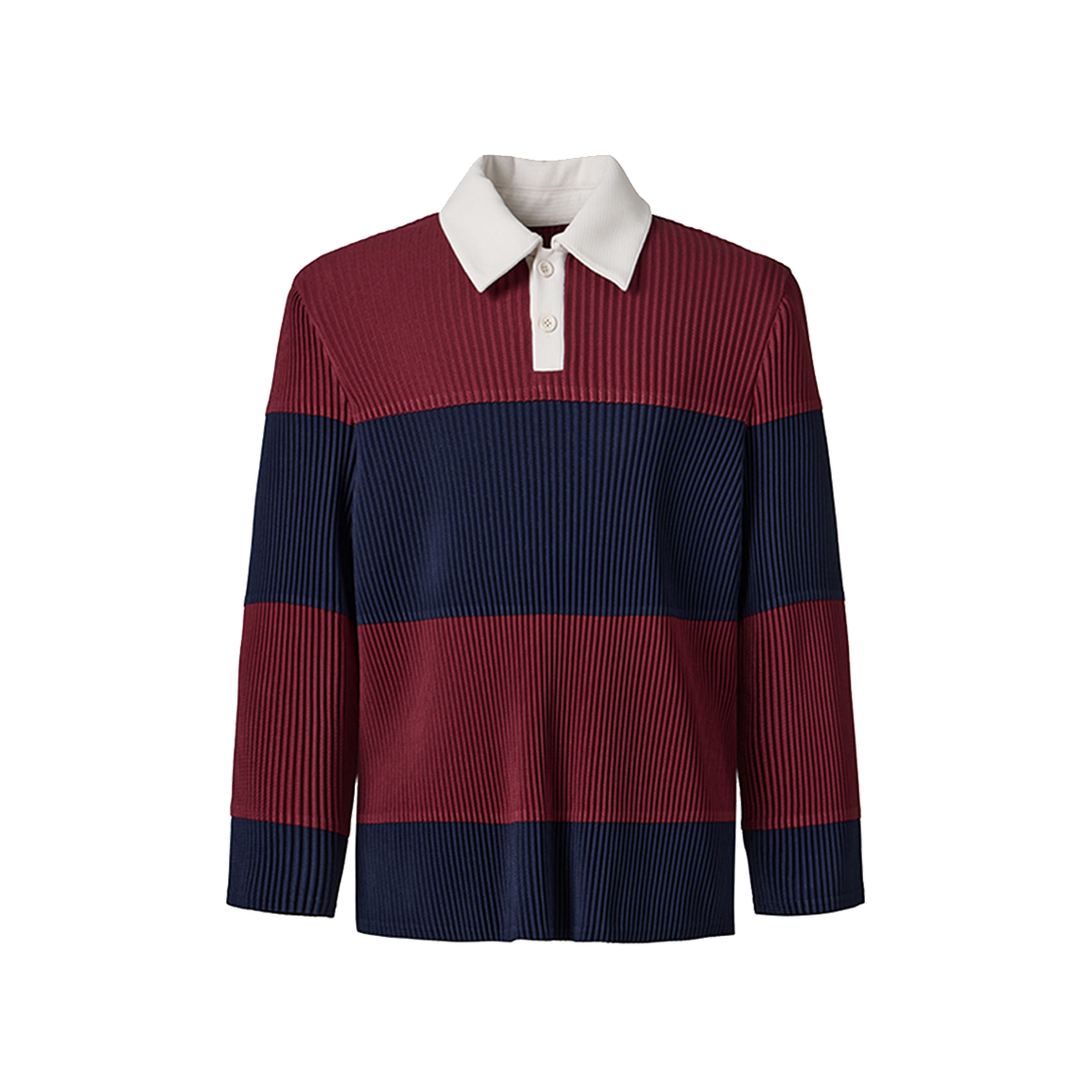 몽플리쎄 여성[공용] 플리츠 스트라이프 럭비 셔츠 레드