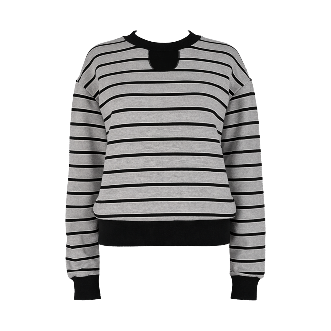 사유 스트라이프 기모 스웻 셔츠 그레이