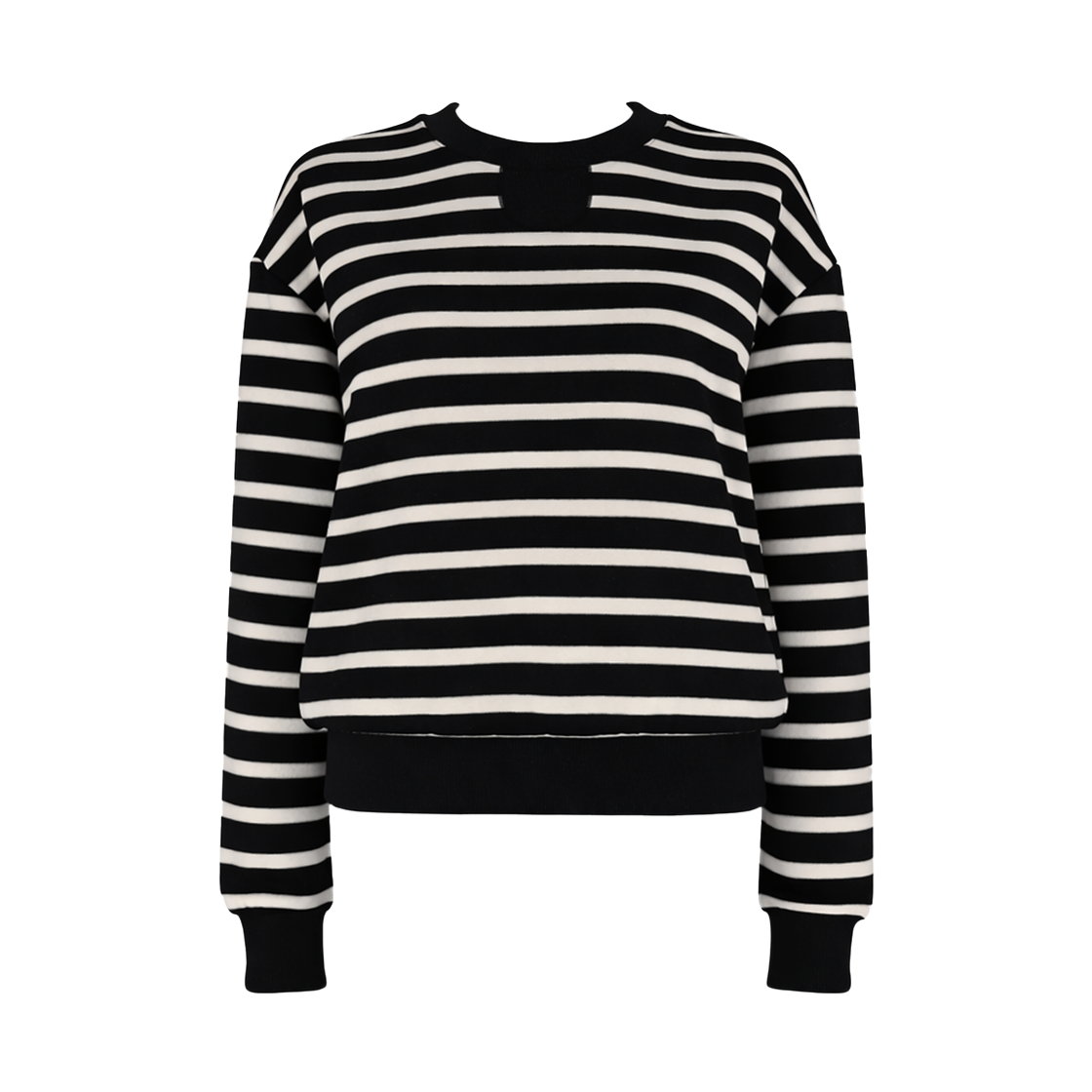 사유 스트라이프 기모 스웻 셔츠 블랙