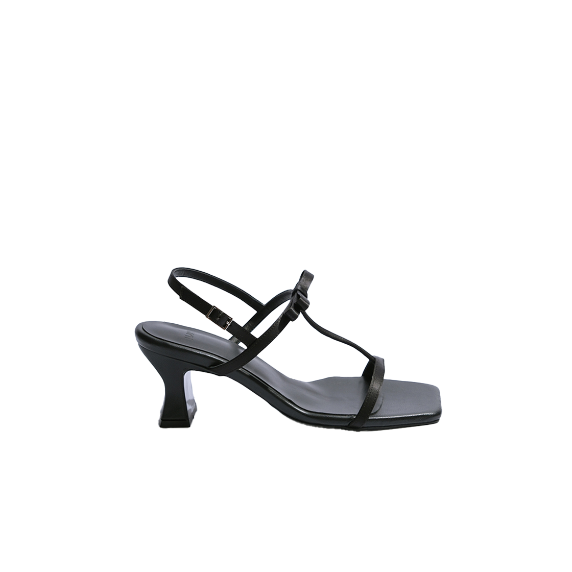 유지 새틴 리본 스트랩 샌들 (6cm) 블랙