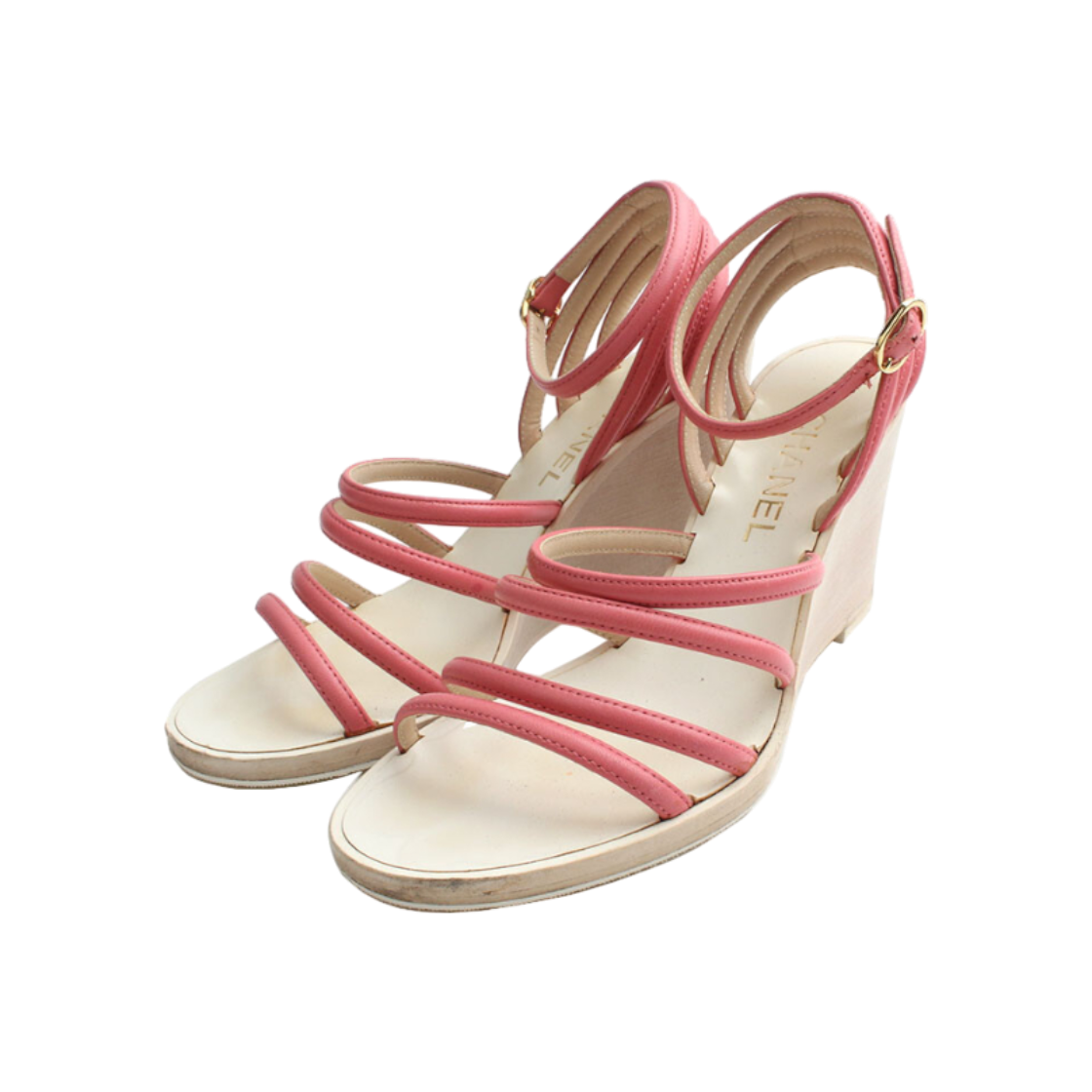 샤넬 로즈 스트랩 웨지 샌들 225