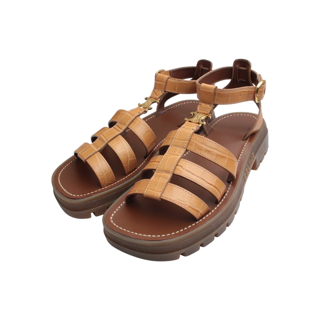 셀린느 카멜 와니 패턴 스트랩 샌들 37