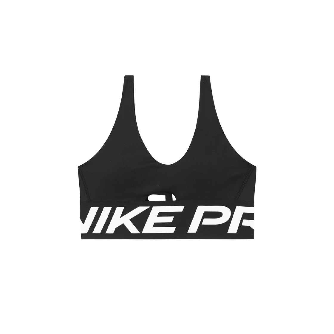 (W) 나이키 인디 라이트 서포트 패드 브이넥 스포츠 브라 블랙 화이트 - 아시아
