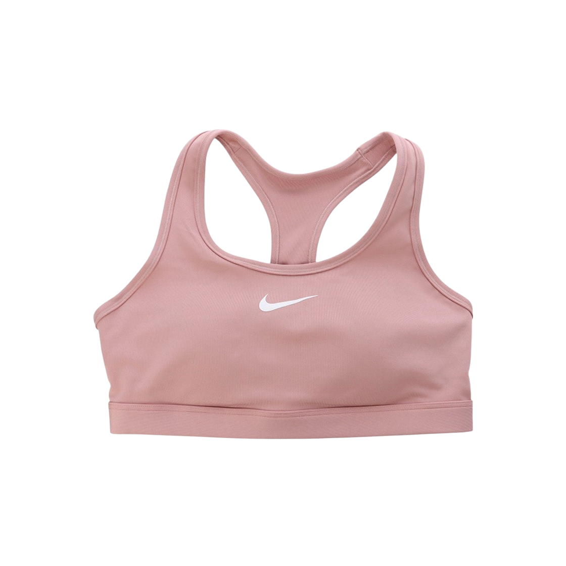 (W) 나이키 스우시 미디움 서포트 패드 스포츠 브라 러스트 핑크 화이트 - 아시아