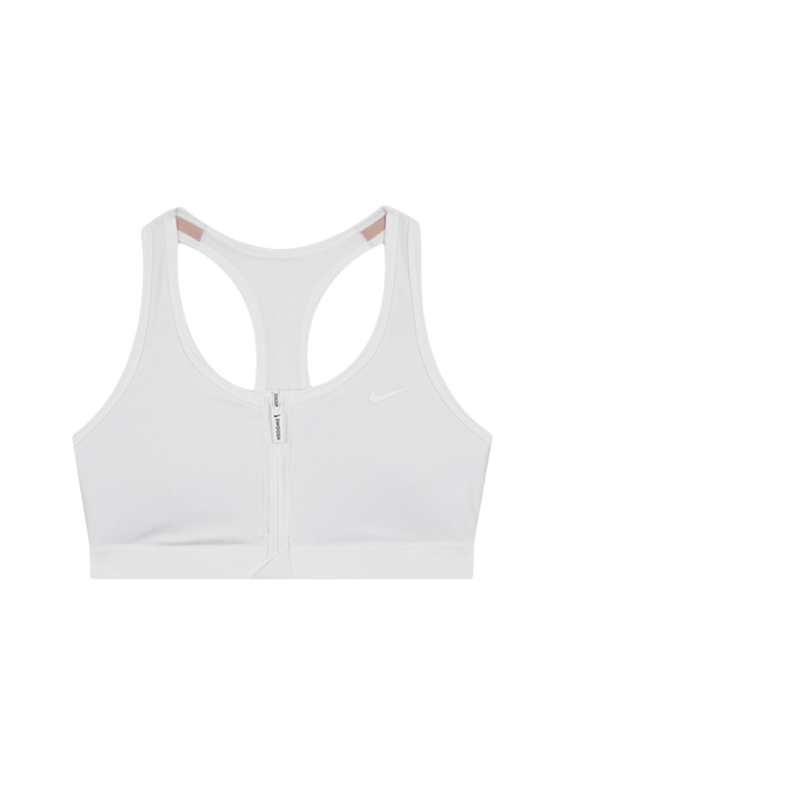 (W) 나이키 스우시 프론트 집 미디움 서포트 패드 스포츠 브라 화이트 - 아시아