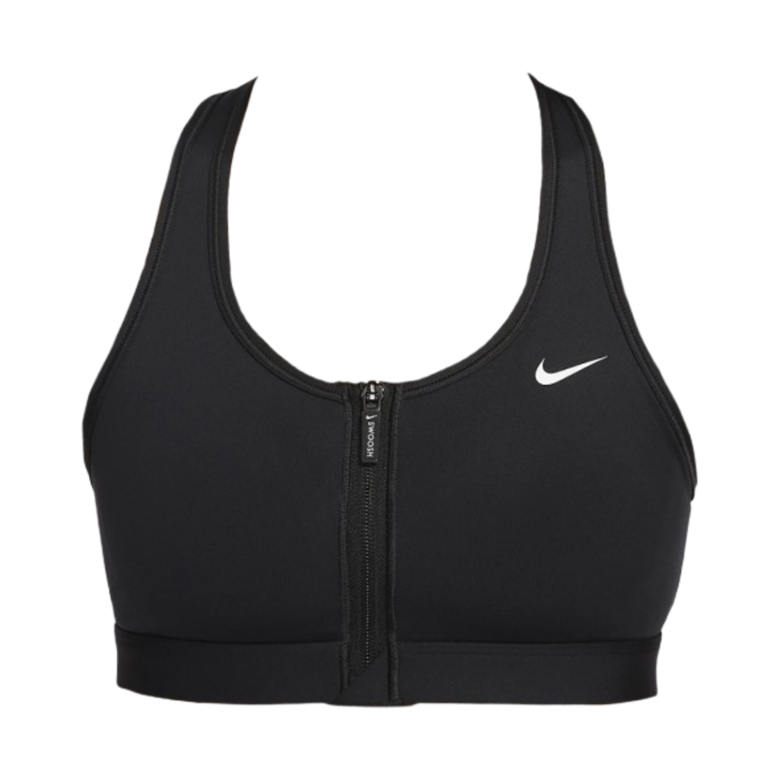 (W) 나이키 스우시 프론트 집 미디움 서포트 패드 스포츠 브라 블랙 - 아시아