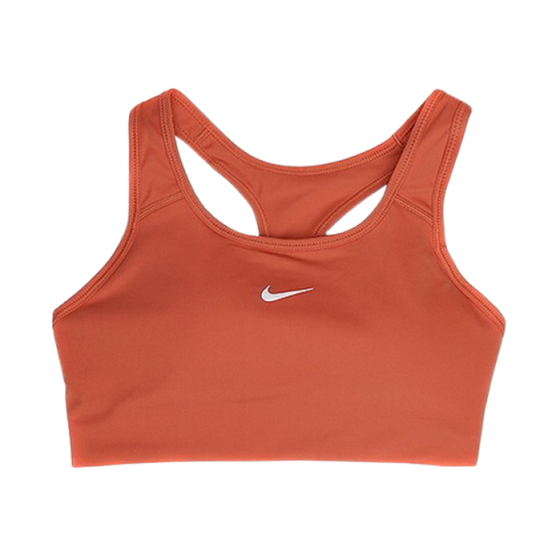 (W) 나이키 스우시 미디움 서포트 패드 스포츠 브라 러스트 핑크 화이트 - 아시아