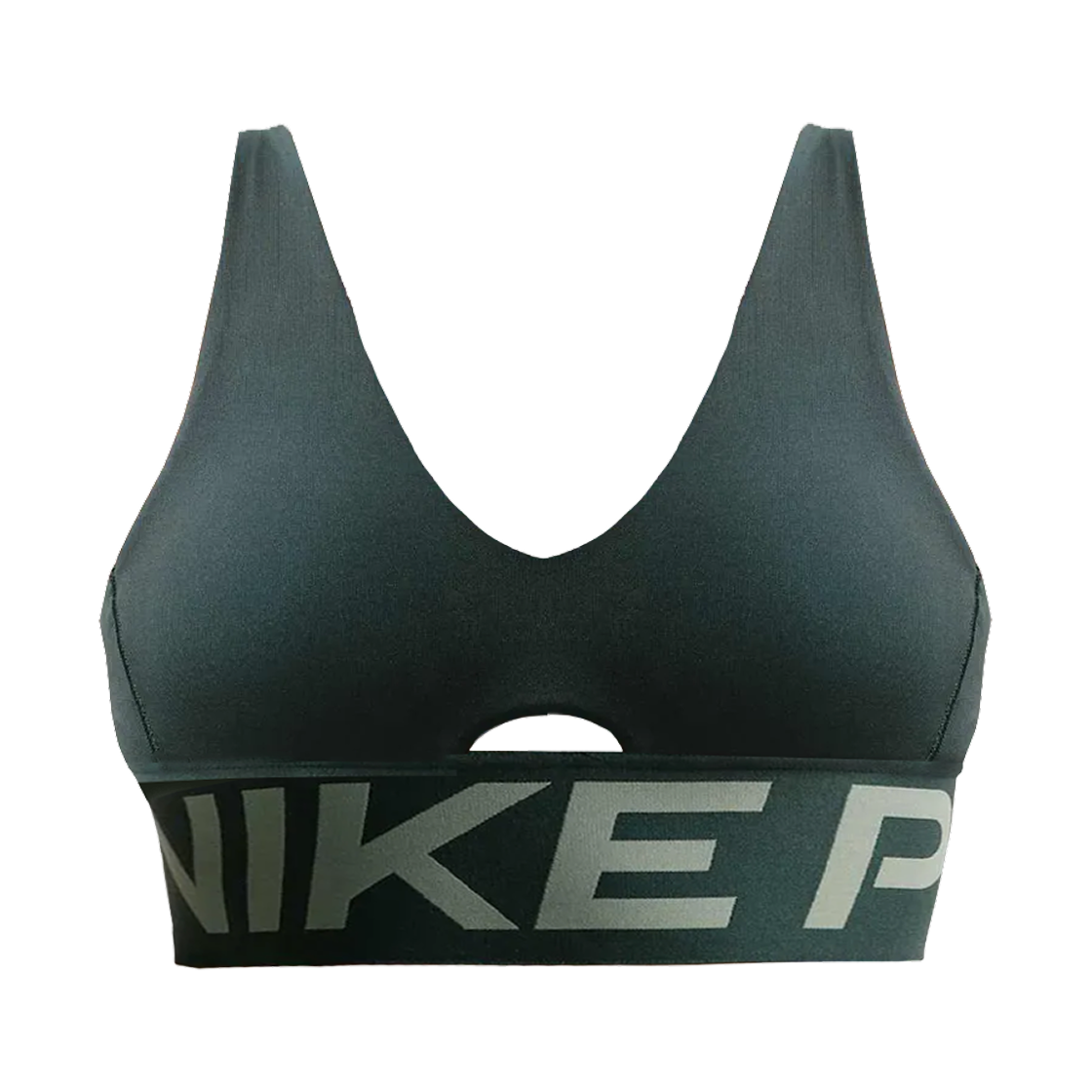 (W) 나이키 프로 인디 플런지 미디움 서포트 패디드 스포츠 브라 씨위드 클레이 그린 - 아시아