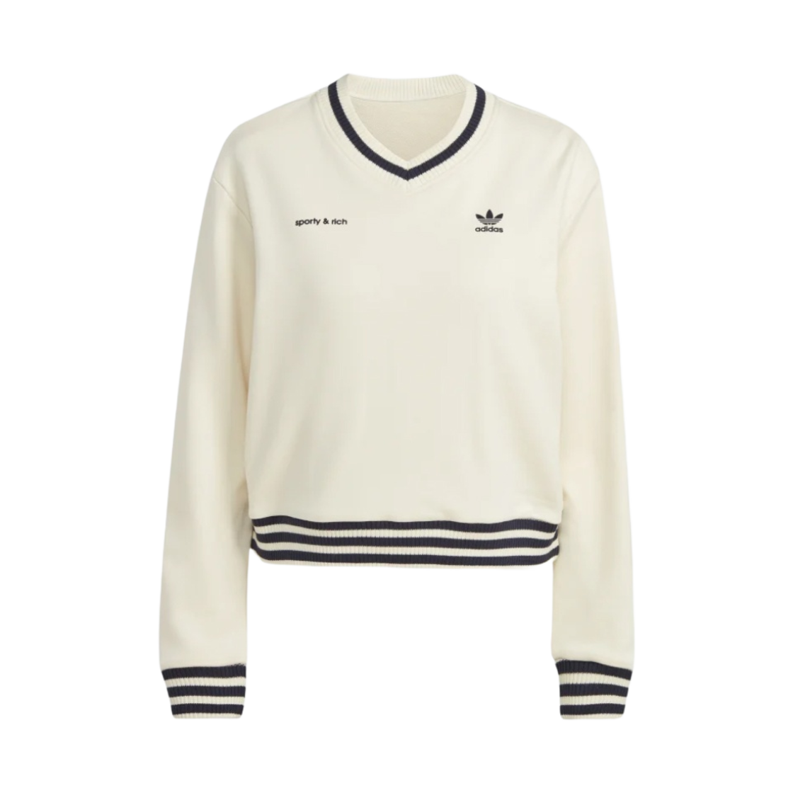 (W) 아디다스 x 스포티 앤 리치 브이넥 스웨터 오프 화이트 나이트 네이비 - US 사이즈