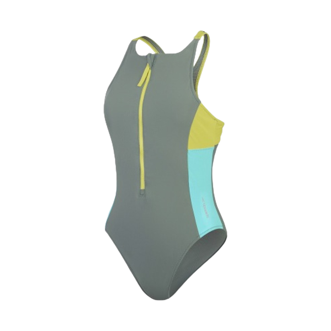 (W) 스피도 컬러블록 프론트 지퍼 원피스 그린 - 아시안 핏