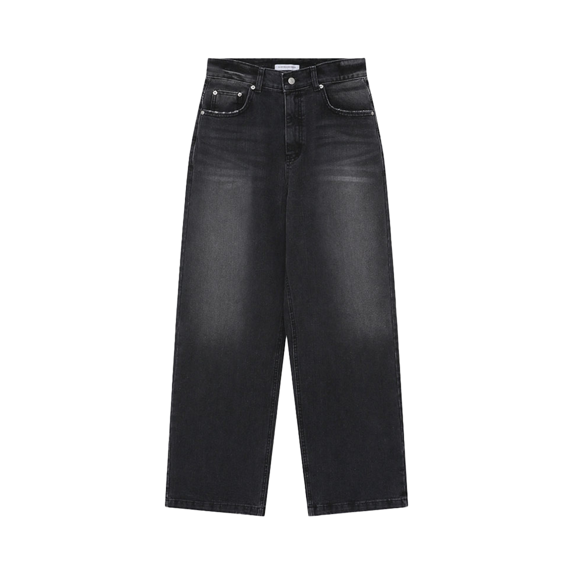 슬로우 레코드 하우스 워시드 와이드 데님 팬츠 블랙