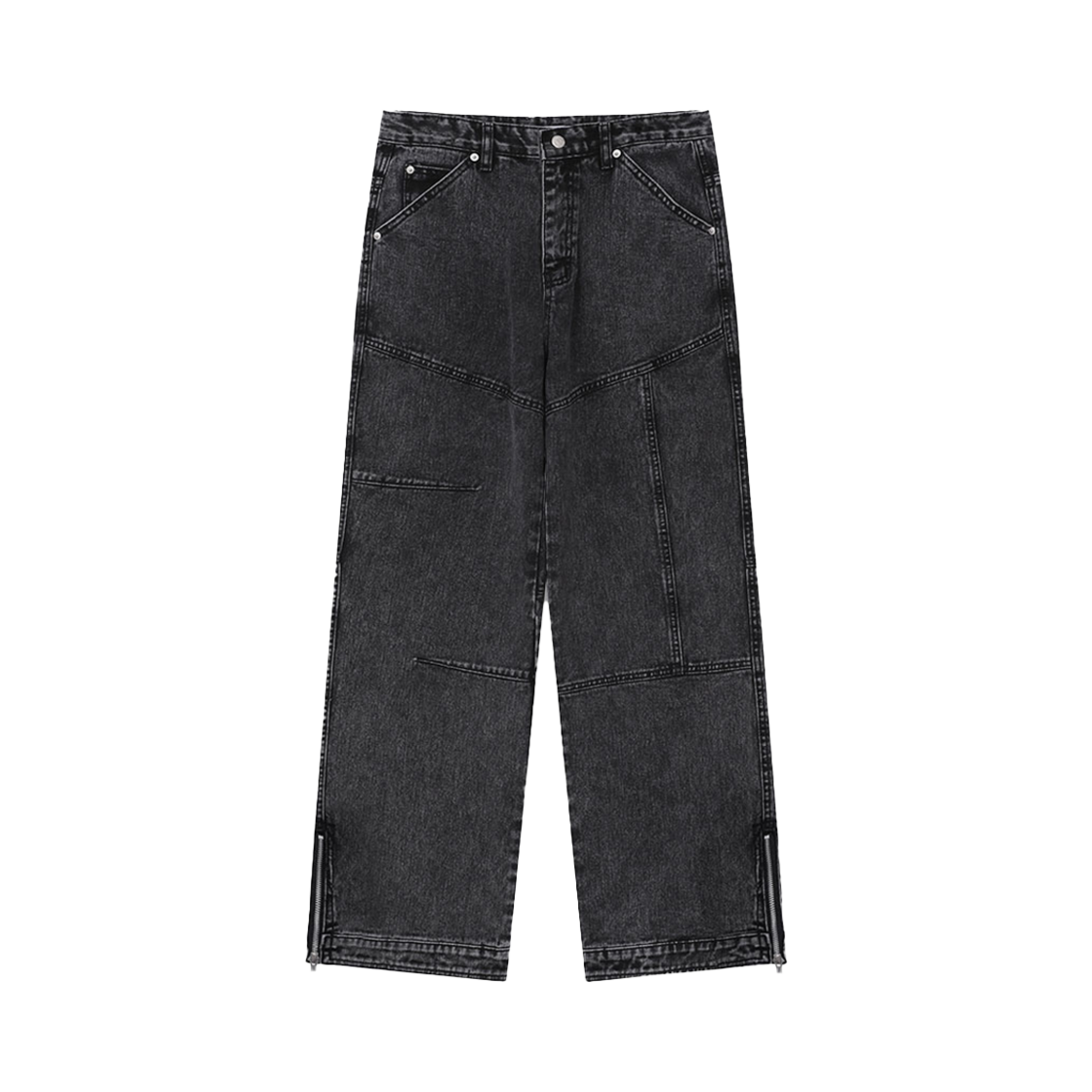 슬로우 레코드 하우스 사이드 지퍼 메이즈 데님 팬츠 블랙